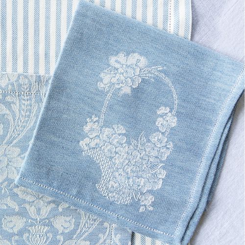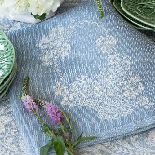 Order now for a limited edition set of four Busatti linen napkins in a charming floral basket motif, designed exclusively for Victoria magazine——you won’t find this pattern anywhere else in the world!