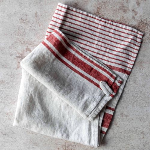 Linen Hand Towel – Stonewashed – Red Stripe Linen – Luxury Thick Linen