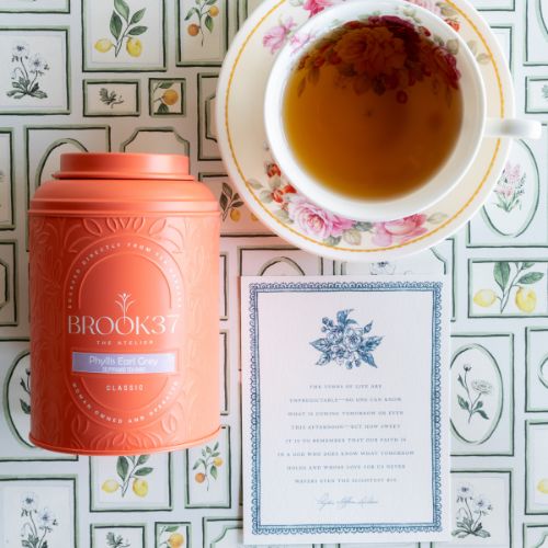 Handcrafted by Brook37 Tea Atelier and named in honor of Phyllis Hoffman DePiano, this bespoke tea blend is perfect for any time of the day. Settle in with your favorite journal, let your thoughts unfold, and savor each sip of this exquisite tea, designed to inspire calm and creativity.