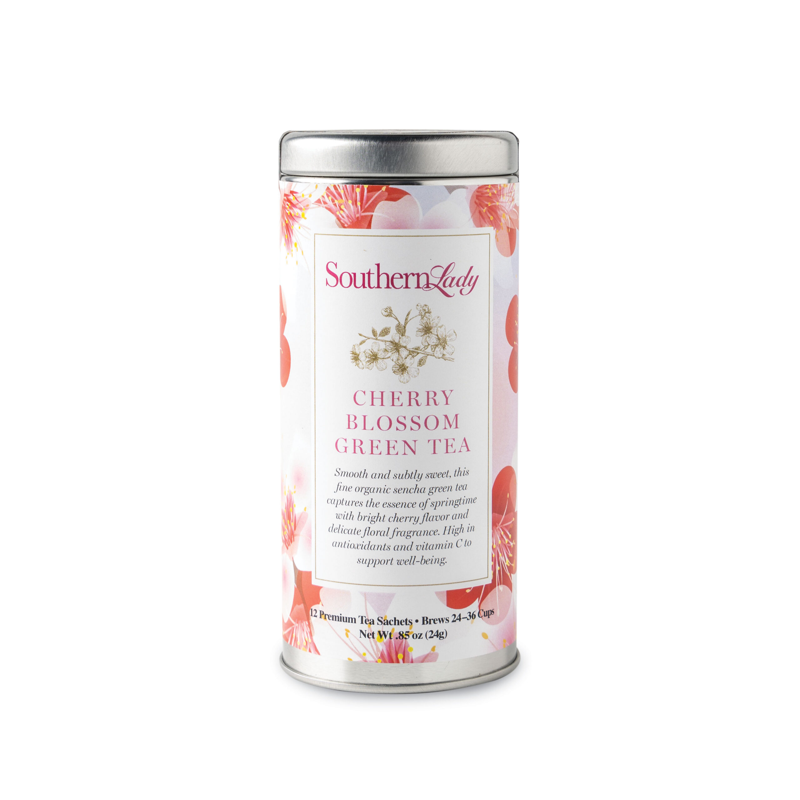 Ingredients: Sencha Green Tea, Natural Cherry Flavoring and Rose Petals, Contains Caffeine