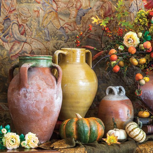 Our October issue brings autumn to life, with a bevy of pumpkins, gourds, and fall florals adding beauty to classic interiors and a delectable harvest menu drawing loved ones outdoors for a festive repast shared under the stars. As crisp weather kindles the urge to travel, sojourns stateside and abroad beckon. Bucolic Lancaster County, Pennsylvania, offers a welcome taste of simple pleasures, while the mansion and gardens of Nemours Estate in Wilmington, Delaware, immerse visitors in the grand legacy of the duPont family. In Italy, esteemed textile houses continue centuries of tradition wrought in the ancient city of Venice. Plus: Meet a remarkable artisan who brings romantic style and breathtaking detail to her exquisite miniature furnishings.